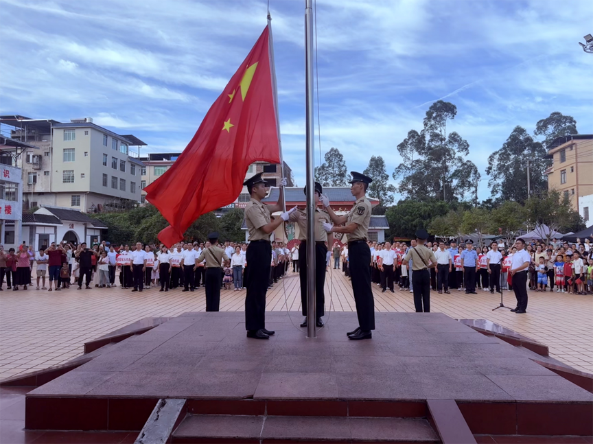 金秋十月,丹桂飄香。10月1日清晨,四排鎮黨建文化廣場上國旗飄揚、鼓樂鏗鏘,全鎮各界代表齊聚一堂,舉行慶祝中華人民共和國成立76周年升國旗儀式。