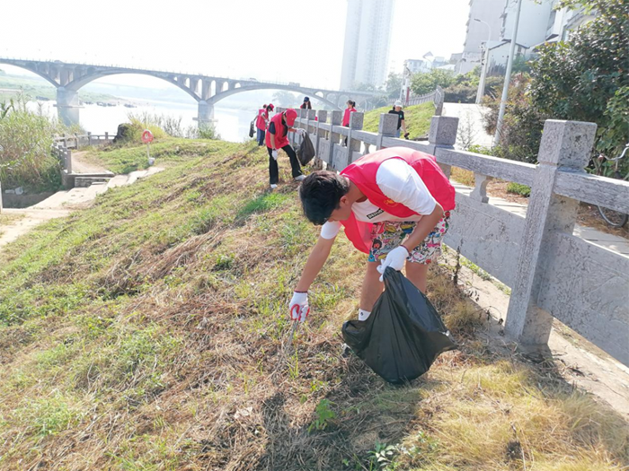當天,志愿者們分組對河堤沿線散落的塑料瓶、廢紙、煙頭等垃圾進行了全面清理。大學生們主動承擔起河岸陡坡、草叢深處等難清理區域的任務,用夾子夾取隱藏的垃圾;中學生們則帶著垃圾袋,沿堤岸有序清掃,還不時向身邊的小學生講解垃圾分類小知識;小學生們也不甘落后,在家長和社區干部的看護下,認真撿拾路面上的碎屑雜物。經過一上午的努力,河堤環境煥然一新。