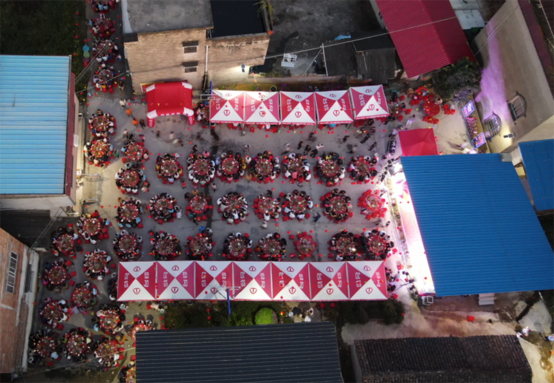 從第一屆到第五屆,百家宴儼然成為嶺背屯凝聚人心、傳承民俗的精神紐帶?;顒踊I備期間,210名村民自發無償參與清潔村莊、場地布置、采購食材等環節,互助協作的身影串聯起最質樸的鄰里情誼;活動中的談笑風生更拉近了鄰里心理距離,增強了村民的自豪感與凝聚力。這份溫暖與熱鬧,不僅成為當地村民的家園記憶,更是鹿寨鎮傳承民俗文化、共建和諧鄉村的生動縮影。