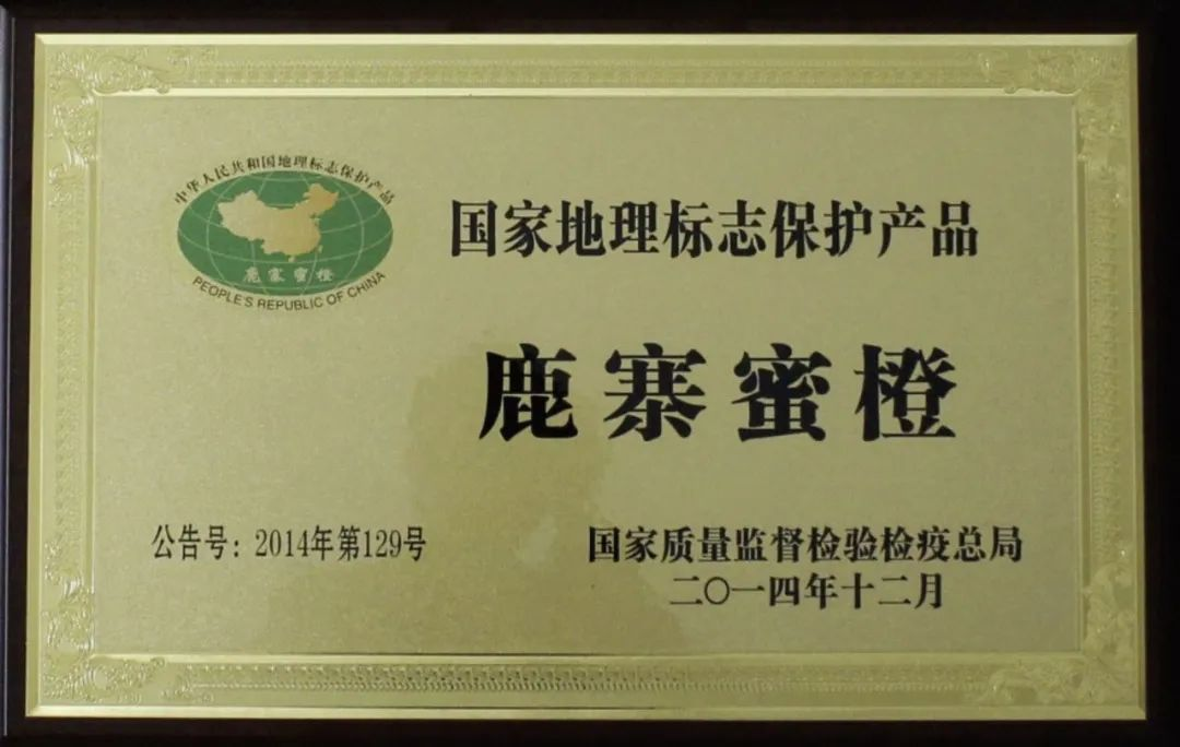 鹿寨蜜橙經廣西農作物品種審定委員會審定,于2008年定名為“桂橙一號”,于2014年獲得國家地理標志保護產品。