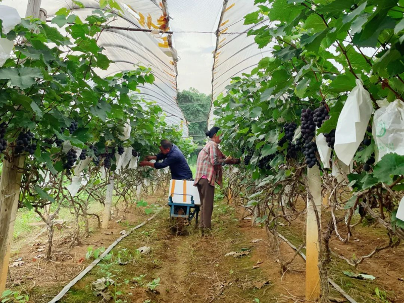 據了解,交通村依托鄉村振興戰略,立足本地資源優勢,將葡萄種植作為重點培育的特色產業。今年全村共種植葡萄約1000多畝,其中種植京亞這個早熟品種占比達70%以上,年產值預計超過1200萬元。通過發展葡萄種植,有效實現了產業發展、集體增收和農戶致富的“三贏”目標。(潘多彩)