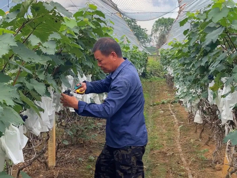 徐建華一邊剪著葡萄一邊打開話匣子,他告訴筆者,種葡萄是門技術活,核心難點在于病害防控,既要時刻觀察葡萄的長勢,以防為主,做到“治未病”。又要根據季節變化特性動態調整大棚里的防蟲和防病措施?,F在,采用“大棚+套袋”模式后,不僅能抗水防曬,還能有效減少病蟲、提升優果率。因其種植的葡萄果粒均勻飽滿、甜度高,積累了大量回頭客商,一說起“阿建的葡萄”,市場上就有很多人知道,因此,徐建華的葡萄總是供不應求。