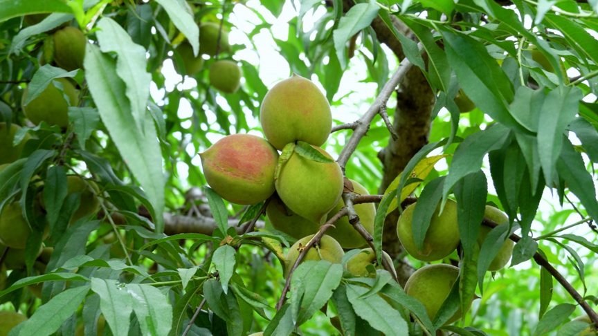 為了打造綠色無公害產品,提升桃子品質,基地用有機肥替代化肥,用粘蟲貼替代農藥,每一顆果實都靠自然生長積攢糖分,甜中帶著自然的清香。功夫不負有心人,2023年,該基地鷹嘴桃獲得綠色食品標志。