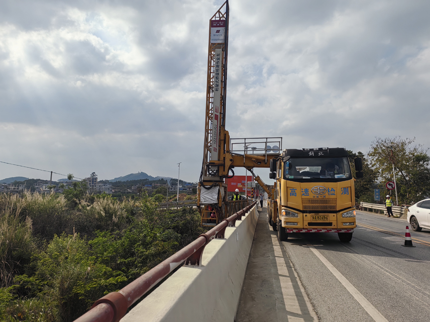 此次檢測覆蓋G323線全線重點橋梁,旨在通過科學評估橋梁技術狀況,及時發現潛在隱患,為后續養護決策提供精準依據。與平時橋梁定期檢查不同,本次檢測應用桁架式橋梁檢測車,替代傳統懸空作業模式,大幅提升檢測安全性與效率。在檢測過程中,技術人員操控檢測車伸縮臂靈活穿梭于橋底,對橋面系、上部結構及下部結構的裂縫、變形、銹蝕等病害進行精細探查,并通過高清影像與數據采集系統,精準記錄病害程度。