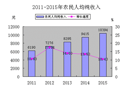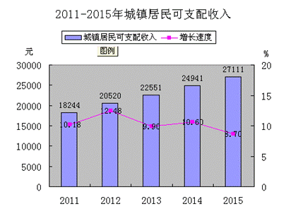 城鄉居民收入水平不斷提高,城鎮居民人均可支配收入27111元,增長8.70%,農民人均純收入10394元,增長10.40%,在崗職工平均工資51713元,增長18.50%。