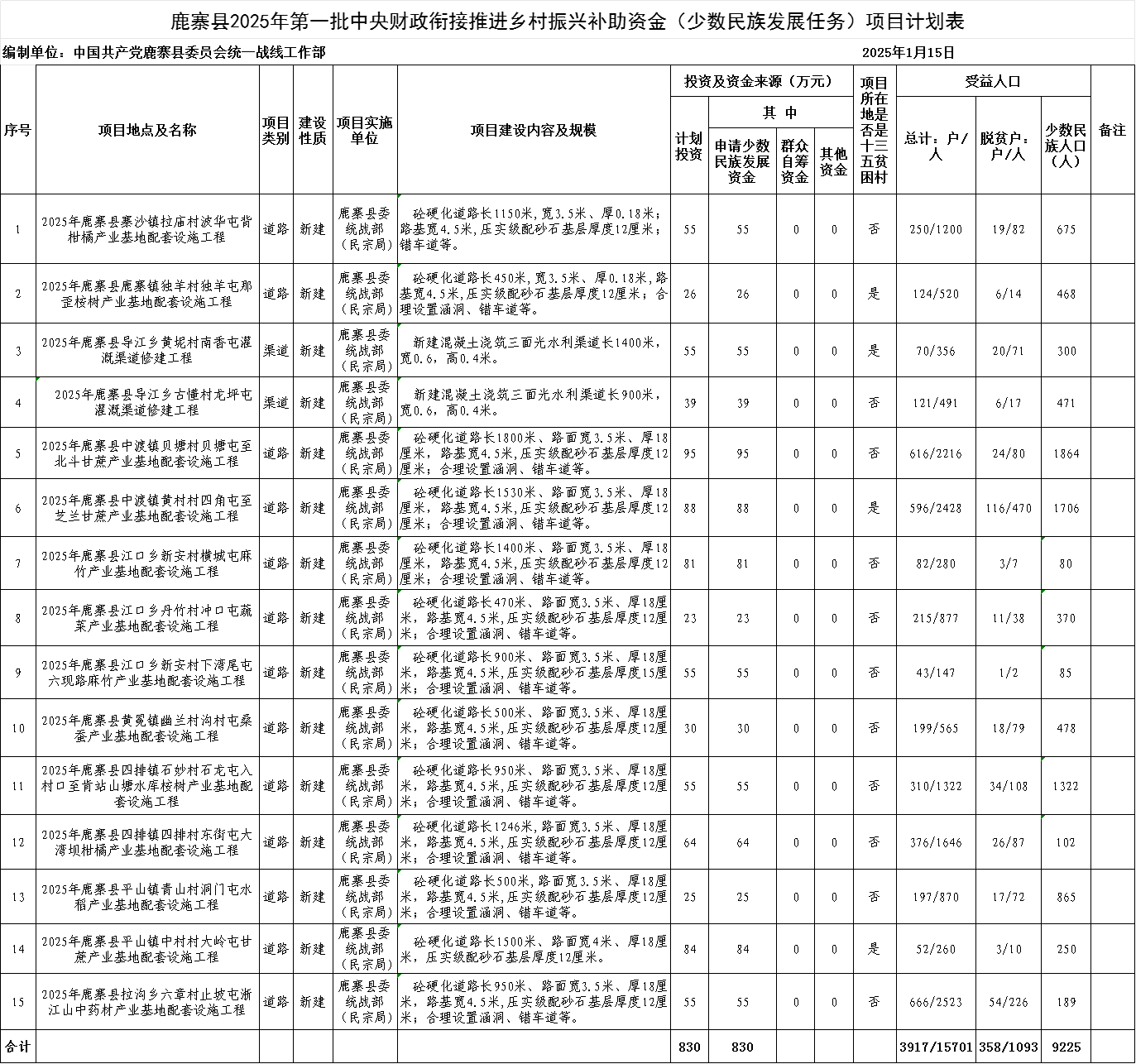 附件:鹿寨縣2025年提前批中央財政銜接推進鄉村振興補助資金(少數民族發展任務)項目計劃表